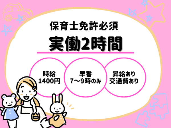 早番での保育をお願いします♪実働2時間~OK!